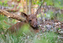 Moose calves: Treat moose calves as you would fawns, but also be aware that approaching or handling a moose calf is likely to elicit a defensive response from a mother moose if it is nearby, and can lead to personal injury.