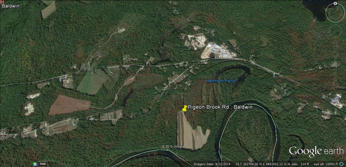 - Pigeon Brook Road, Baldwin. Field is accessed by gated gravel road off the east end of Pigeon Brook Road. Leaves Route 113 across from Limington Lumber Mill.