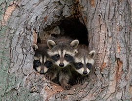 Squirrels or Raccoons: If a nest of squirrels or raccoons must be disturbed (for example, if a tree has been cut down or fallen), leave the young in the den part of the tree and move this part of the tree to a nearby protected place. The mother will most likely come back and transport them to a new location.