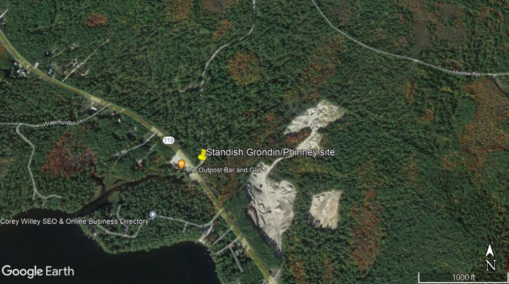 - Grondin/Phinney site – Park at gate on pit access road across from former Outpost Grill on Rt. 113.