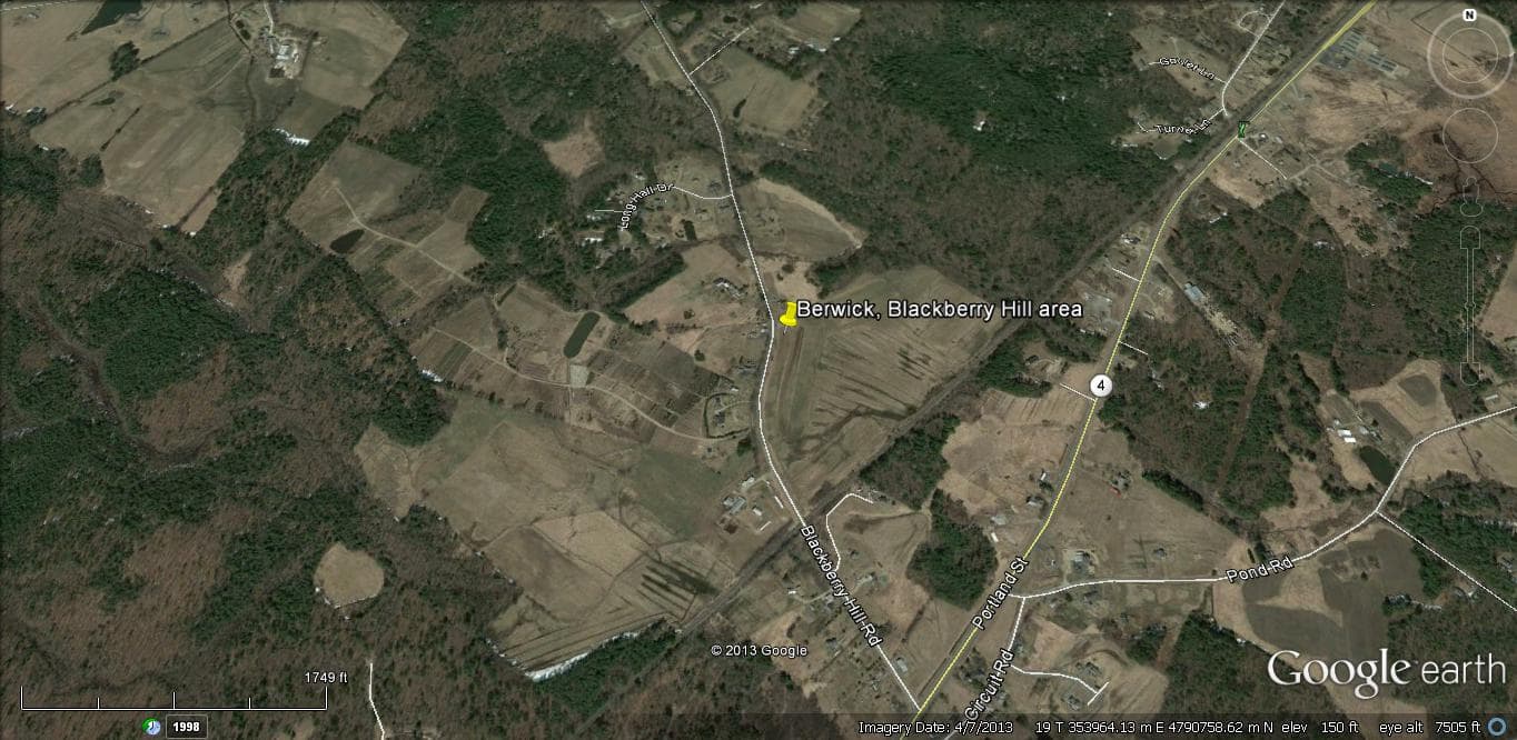 Blackberry Hill Area, Berwick. About .3 mile north of RR tracks.