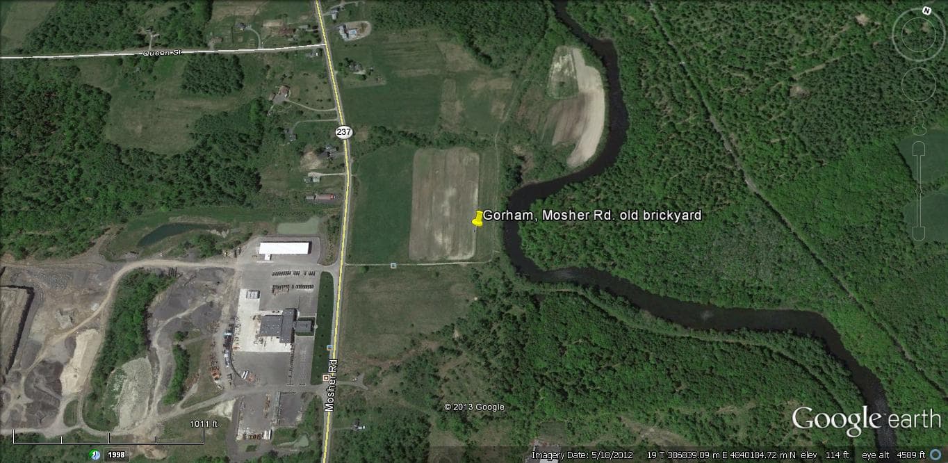 - Brickyard, Gorham. Across from Shaw Brothers asphalt plant, Route 237.