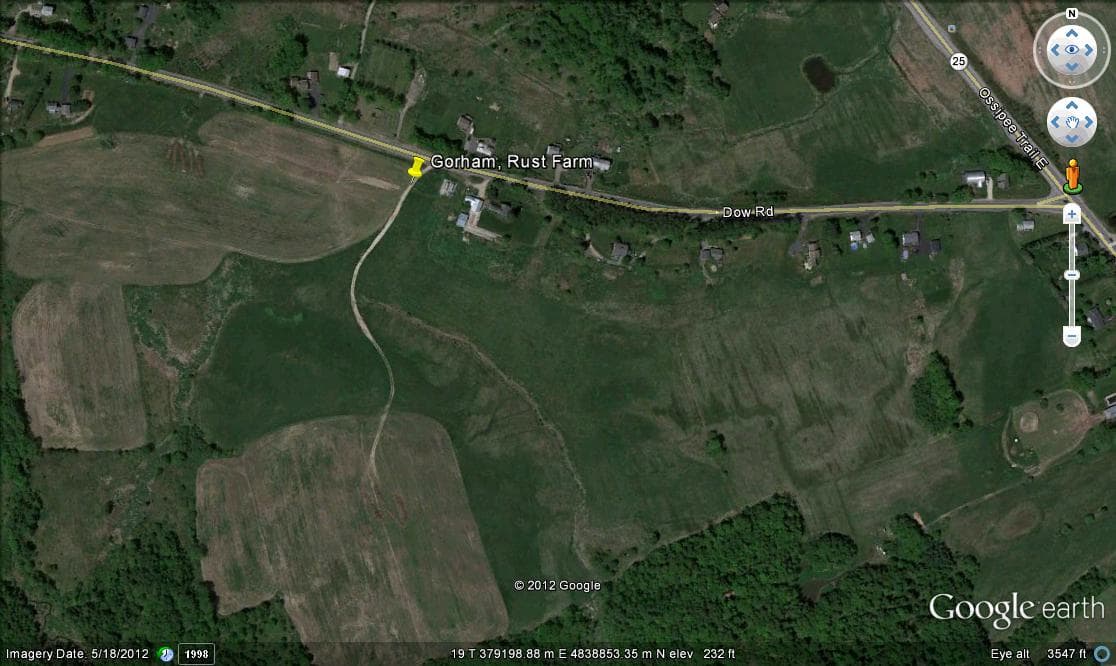 - Rust Farm, Gorham. Dow Road. 4/10 mile west of Route 25.
